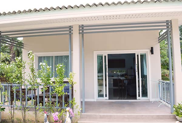 Discover the beauty of Khanom from the comfort of England House Villas. Nestled in Thailand's picturesque landscape, this charming 1-bedroom, 1-bathroom villa offers lots of light and is surrounded by lush gardens.
